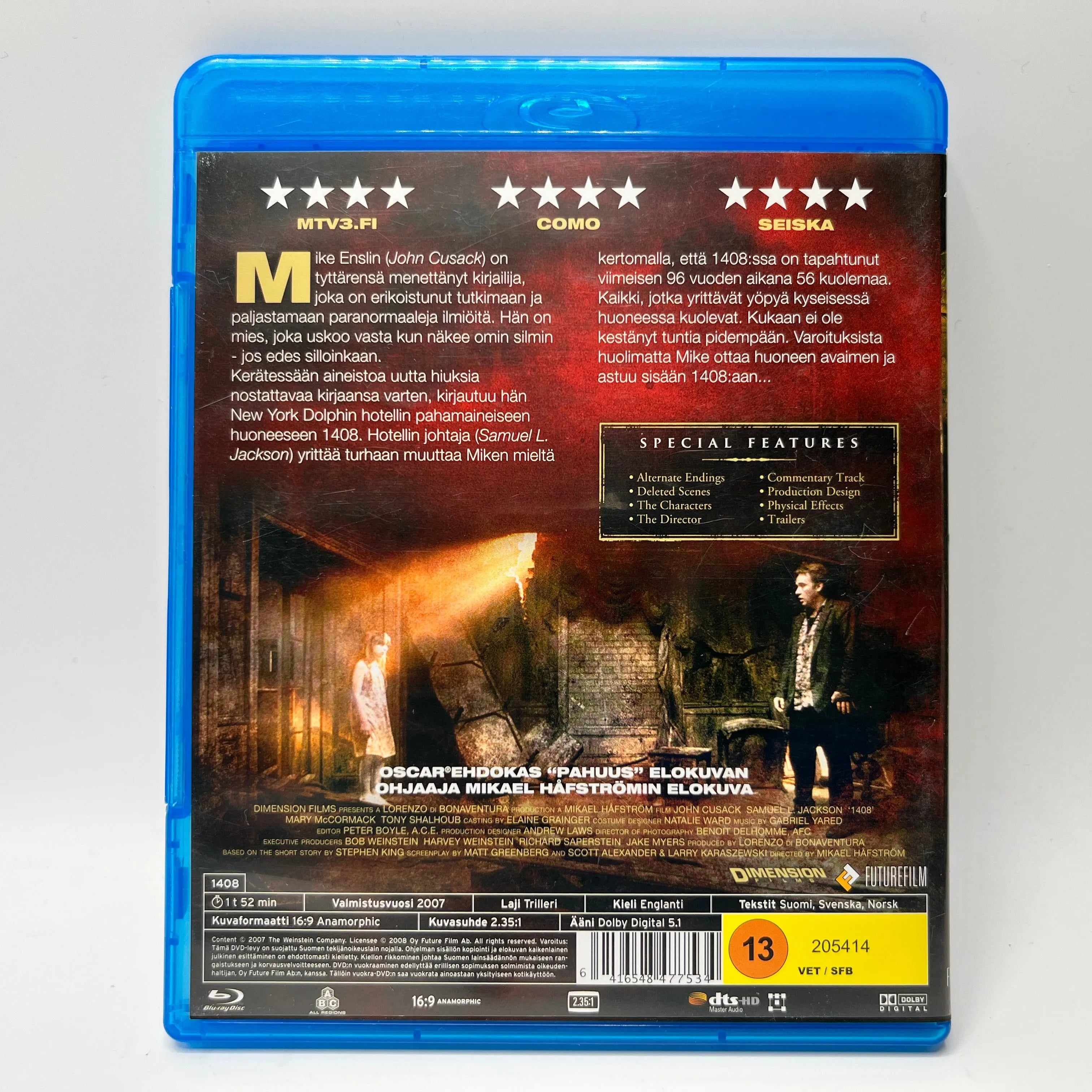 1408 on psykologinen kauhutrilleri, jossa paranormaaleihin ilmiöihin epäilevästi suhtautuva kirjailija uskaltautuu pahamaineiseen hotellihuoneeseen. Huoneeseen liittyvä synkkä historia ja varoitukset eivät estä häntä astumasta sisään, mutta pian todellisuus alkaa murentua. Elokuva rakentaa ahdistavaa kauhua suljetussa tilassa, jossa pahin vihollinen ei välttämättä ole yliluonnollinen voima vaan ihmismieli itse.