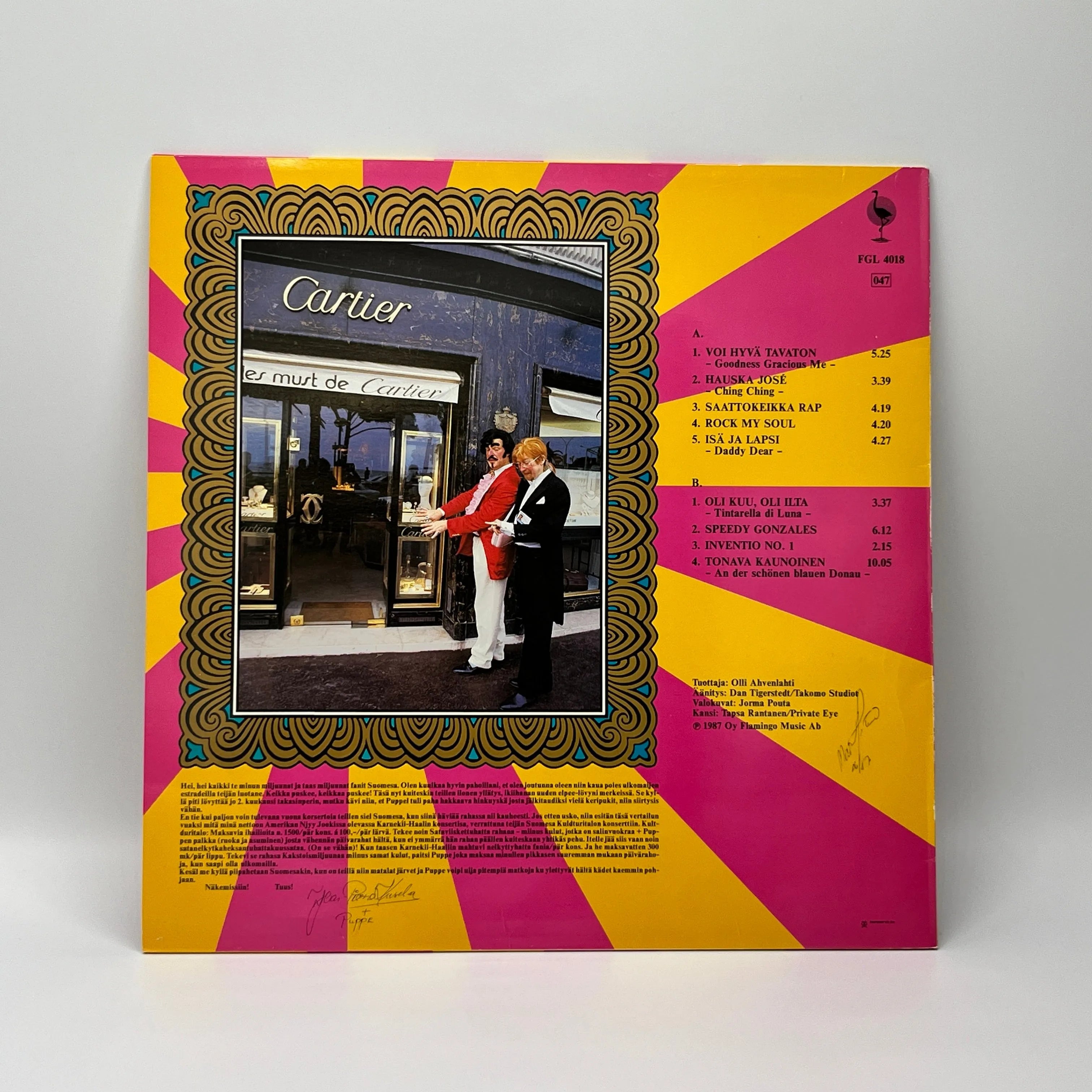 Käytetty LP-levy (1987, takana nimi signeerattu)
