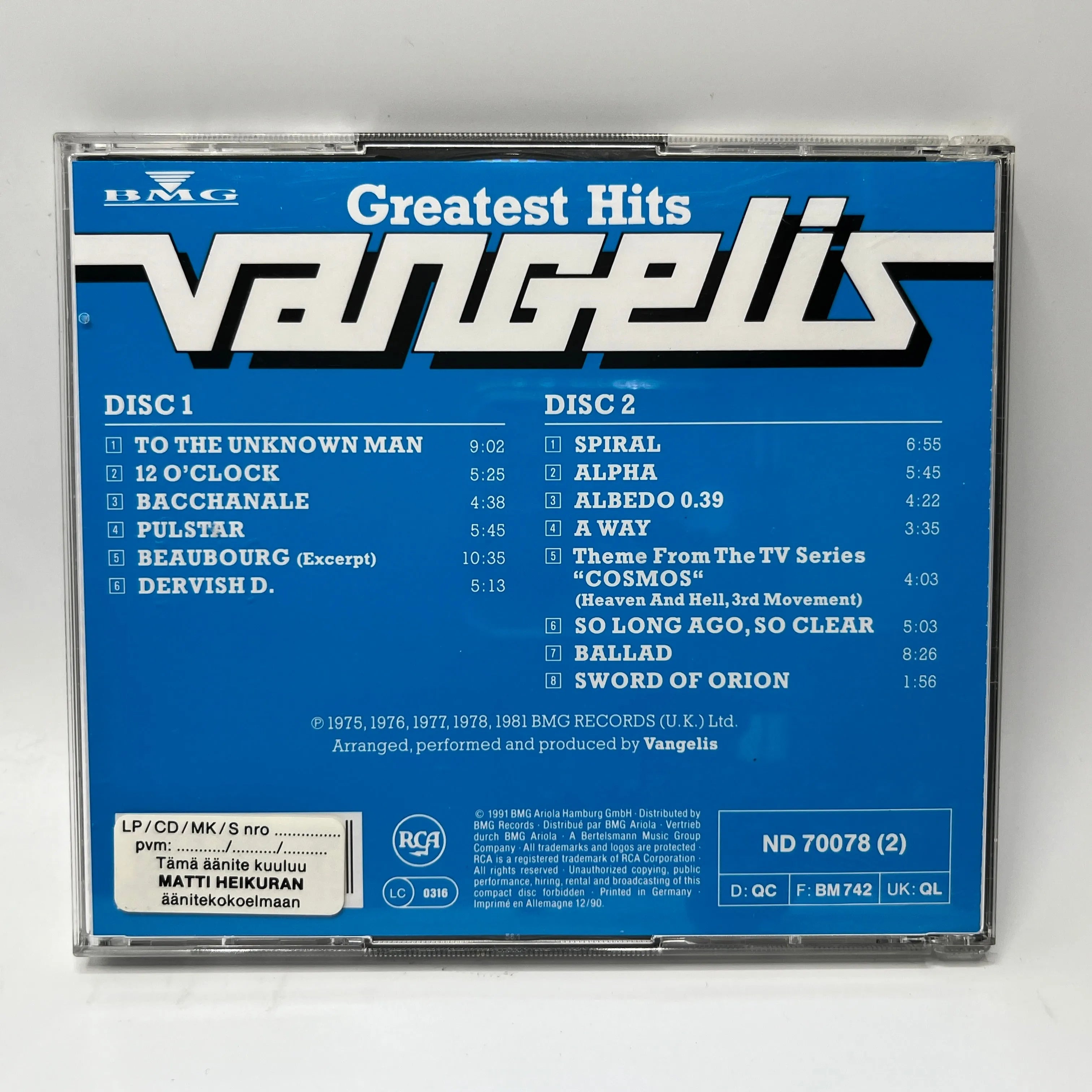 Vangelis – Greatest Hits 2CD