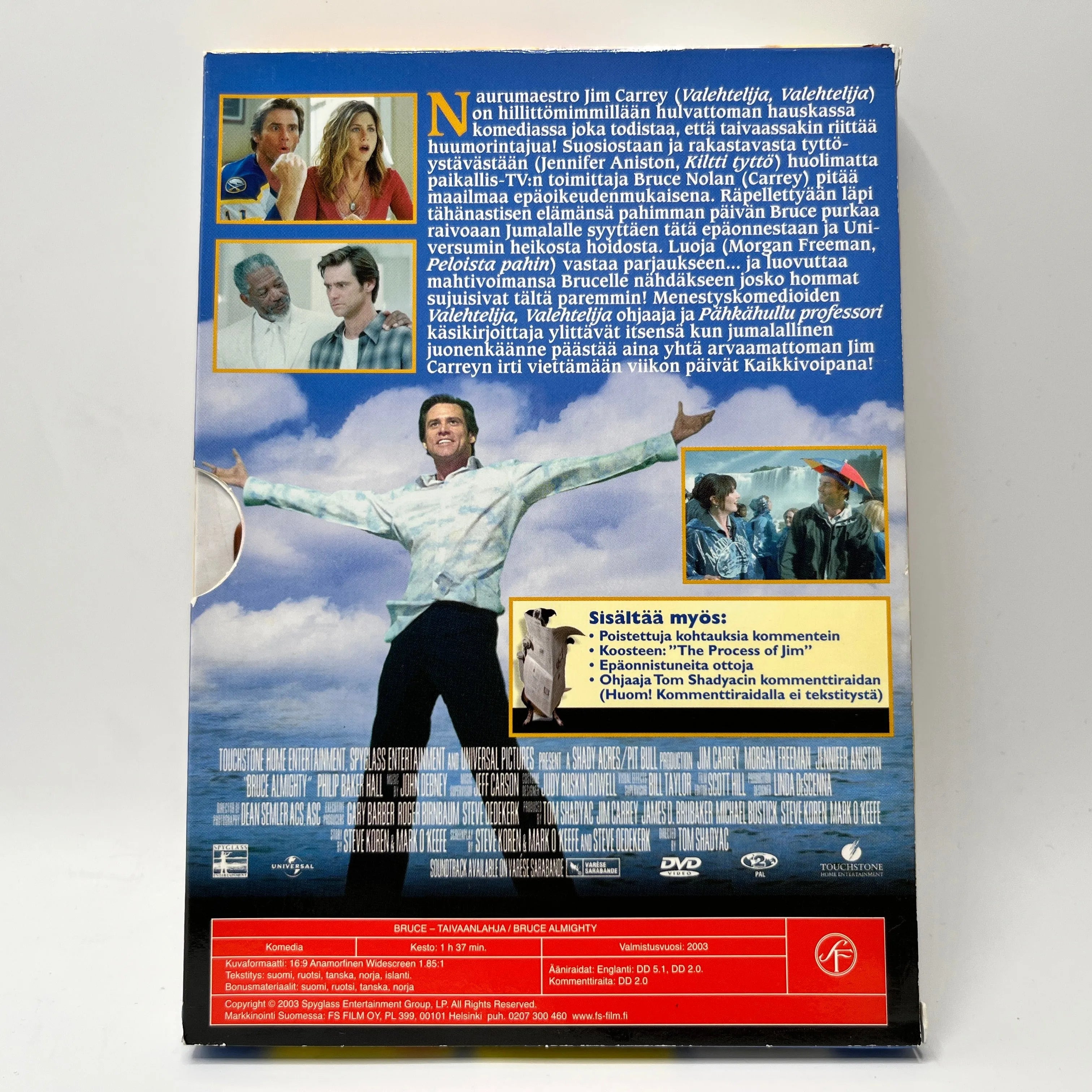 Komediassa Bruce – Taivaanlahja televisiotoimittaja Bruce Nolan (Jim Carrey) saa Jumalalta väliaikaisesti tämän voimat ja huomaa pian, kuinka vaikeaa maailman hallitseminen on. Elokuvan on ohjannut Tom Shadyac ja toisessa roolissa nähdään Morgan Freeman.
