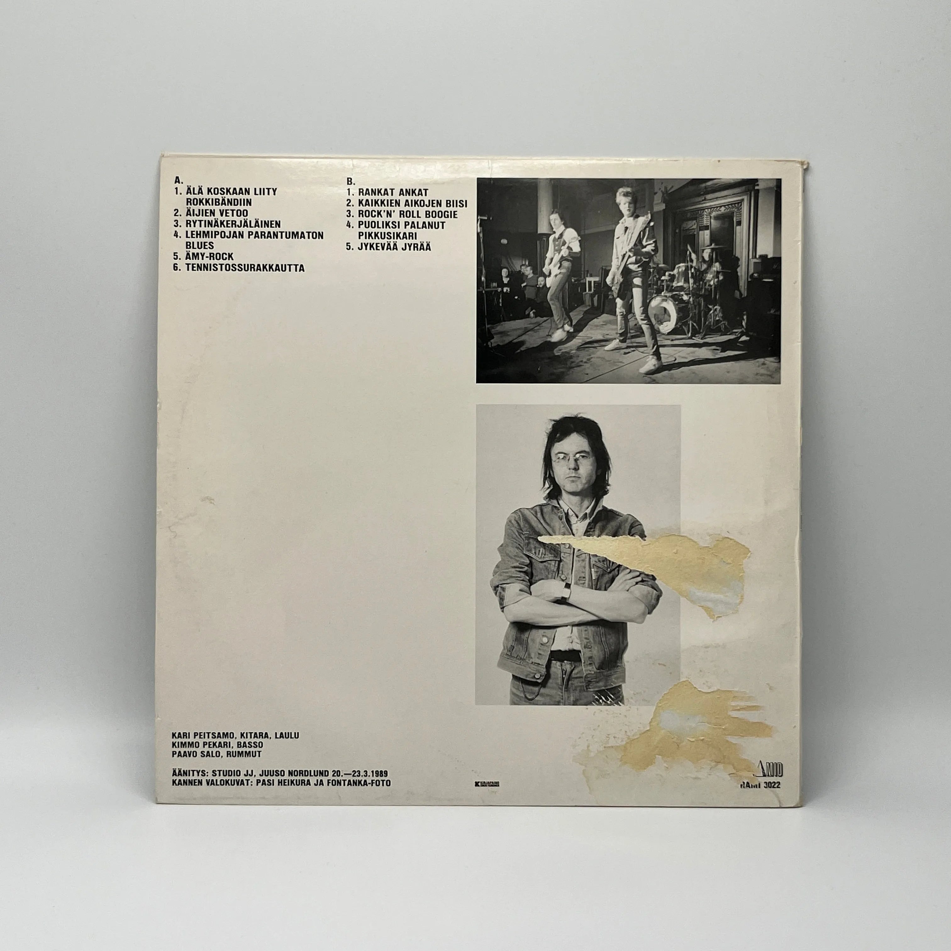 Käytetty LP-levy (1989, pintarepämä takakannessa)