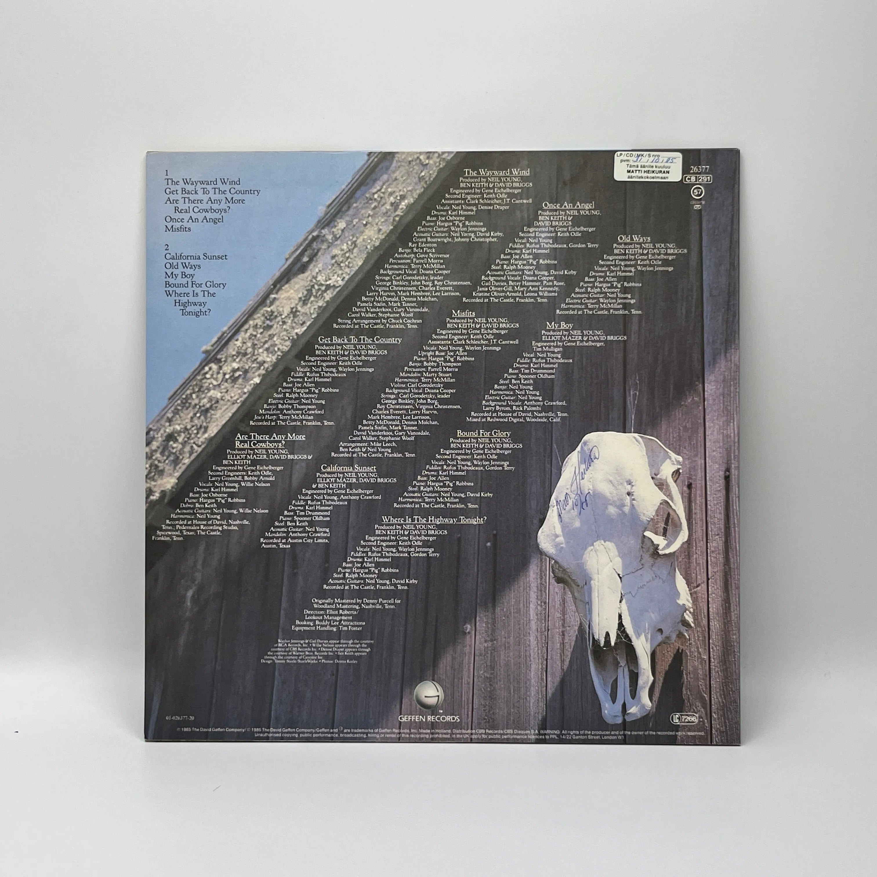 Käytetty LP-levy (1985, Europe -painos, OIS joka hieman revennyt, takana signeeraus)