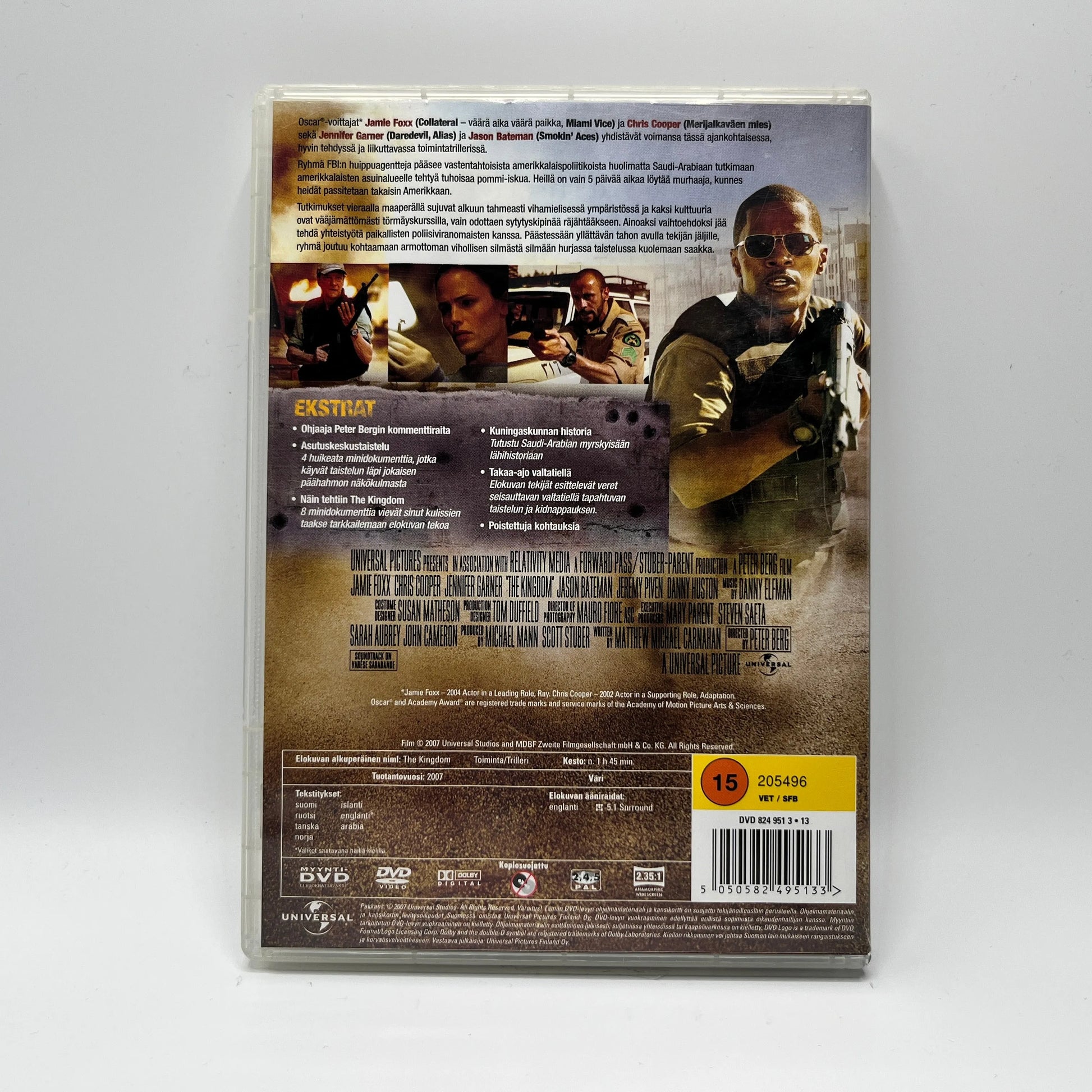 Oscar®-voittajat* Jamie Foxx (Collateral – väärä aika väärä paikka, Miami Vice) ja Chris Cooper (Merijalkaväen mies) sekä Jennifer Garner (Daredevil, Alias) ja Jason Bateman (Smokin’ Aces) yhdistävät voimansa tässä ajankohtaisessa, hyvin tehdyssä ja liikuttavassa toimintatrillerissä. Ryhmä FBI:n huippuagentteja pääsee vastentahtoisista amerikkalaispoliitikoista huolimatta Saudi-Arabiaan tutkimaan amerikkalaisten asuinalueelle tehtyä tuhoisaa pommi-iskua. Heillä on vain 5 päivää aikaa löytää murhaaja, kunnes heidät passitetaan takaisin Amerikkaan.. Tutkimukset vieraalla maaperällä sujuvat alkuun tahmeasti vihamielisessä ympäristössä ja kaksi kulttuuria ovat vääjämättömästi törmäyskurssilla, vain odottaen sytytyskipinää räjähtääkseen. Ainoaksi vaihtoehdoksi jää tehdä yhteistyötä paikallisten poliisiviranomaisten kanssa. Päästessään yllättävän tahon avulla tekijän jäljille, ryhmä joutuu kohtaamaan armottoman vihollisen silmästä silmään hurjassa taistelussa kuolemaan saakka.
