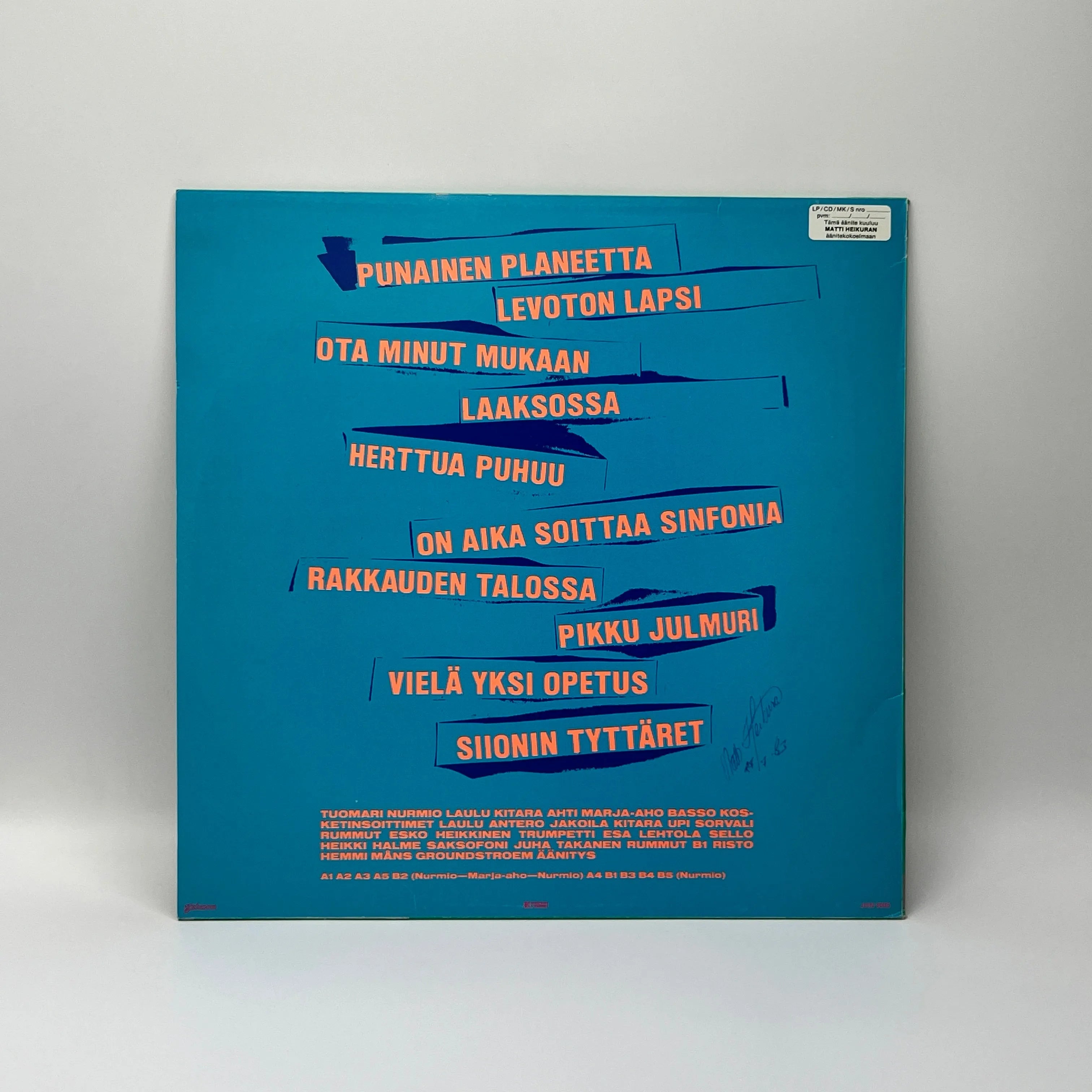 Käytetty LP-levy (1982, Musta/valkoinen label, takana signeeraus ja tarra jossa nimi)
