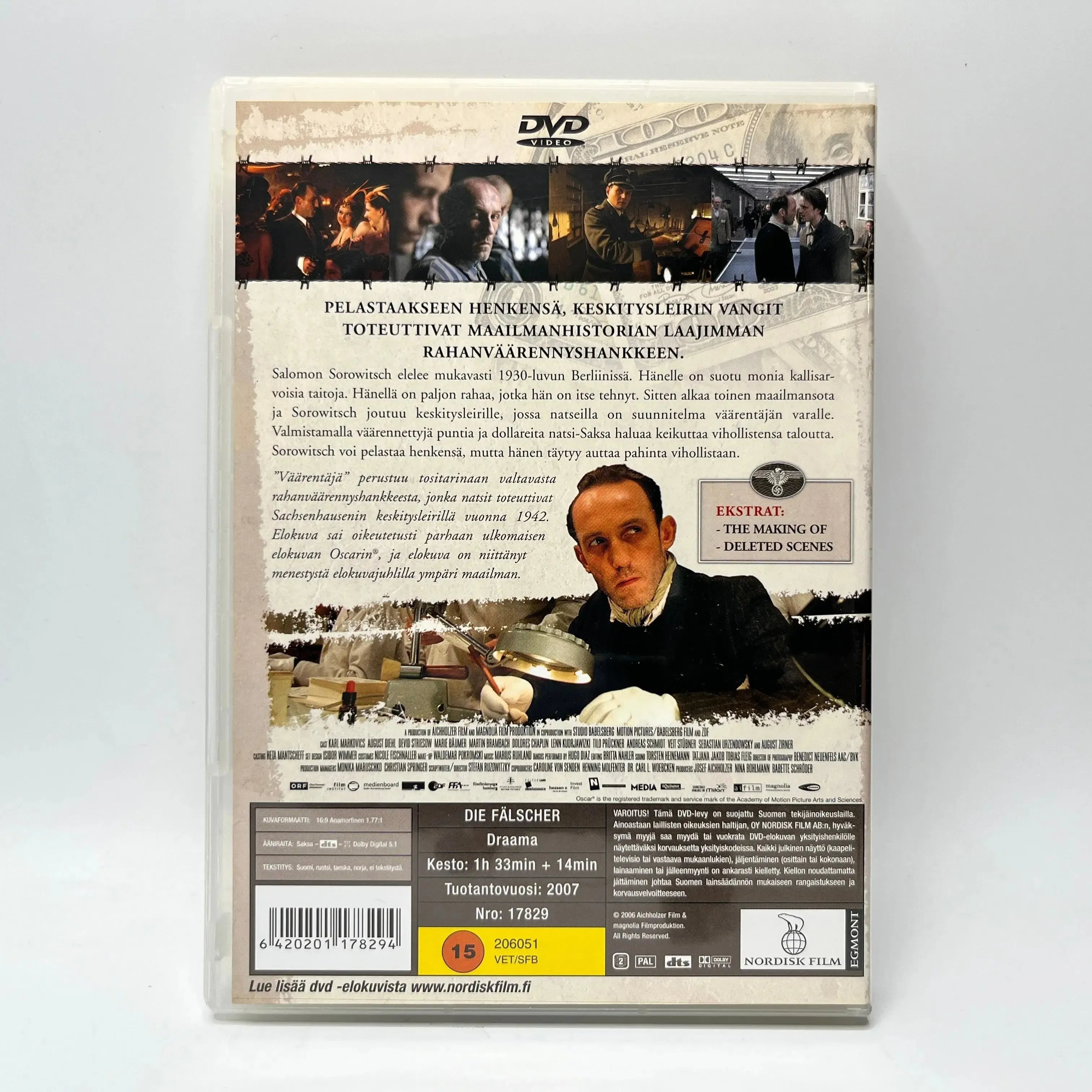 Väärentäjä kertoo Salomon Sorowitschista, joka ajautuu toisen maailmansodan aikana keskitysleirille ja pakotetaan auttamaan natseja massiivisessa rahanväärennysoperaatiossa. Valmistamalla vääriä puntia ja dollareita hän voi pelastaa henkensä – mutta vain palvelemalla pahinta vihollistaan. Elokuva perustuu tositapahtumiin Sachsenhausenin keskitysleiriltä vuodelta 1942. Teos voitti Oscarin® parhaasta ulkomaisesta elokuvasta ja on ohjaaja Stefan Ruzowitzkyn kansainvälisesti ylistetty työ.