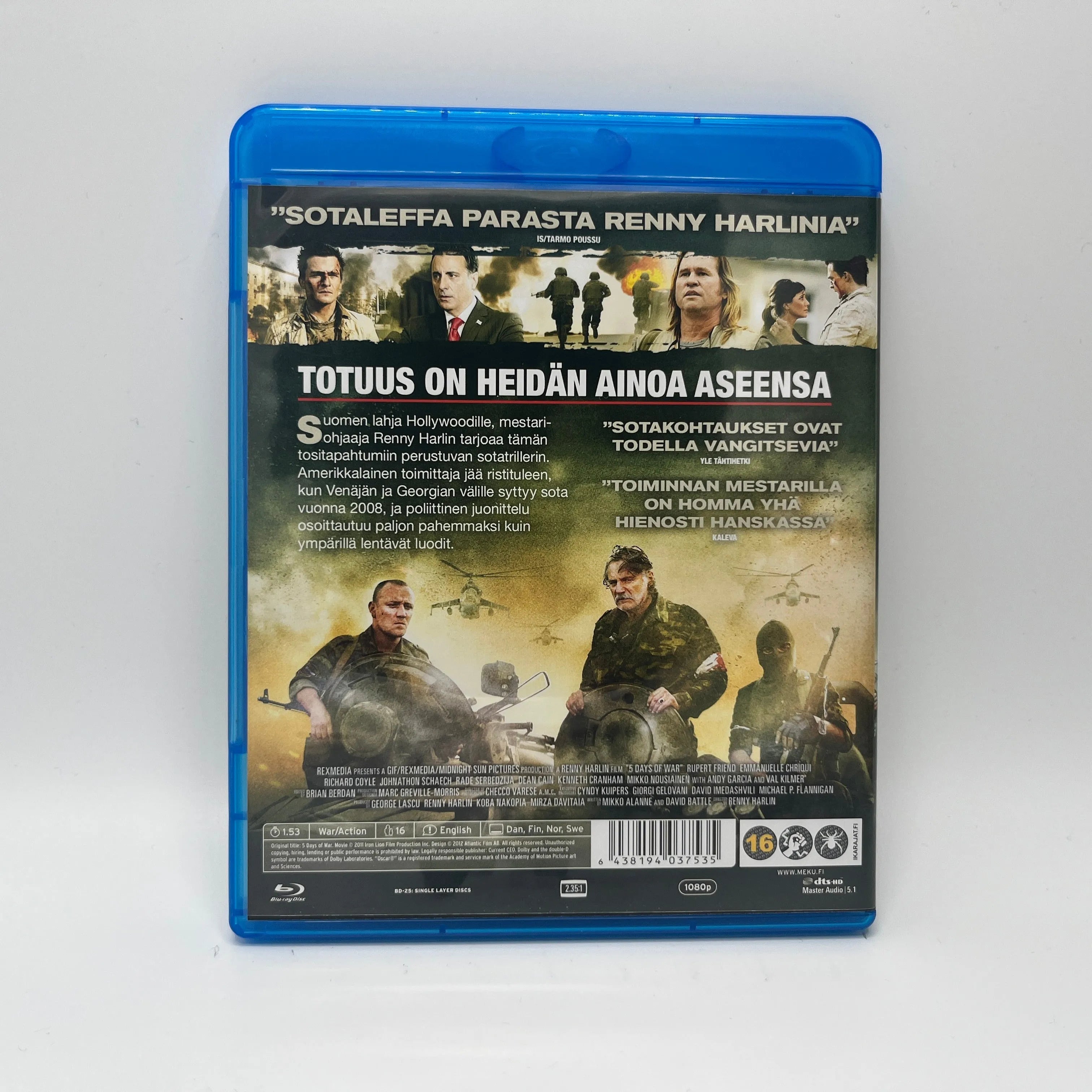 Viiden päivän sota (5 Days of War) – Renny Harlinin kansainvälinen toiminta- ja jännityselokuva perustuu vuoden 2008 Venäjän–Georgian sotaan. Amerikkalaiset toimittajat joutuvat taistelualueelle ensimmäisten ilmaiskujen aikana ja kohtaavat sodan vaarat ja poliittiset juonittelut. Räjähtävän jännittävä elokuva huippunäyttelijäkaartilla.